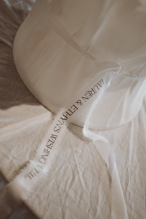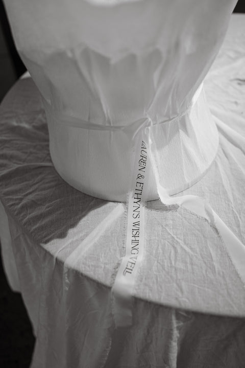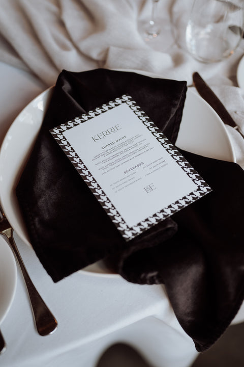 The reception space continued this elevated feel. Each menu featured a unique custom border that framed the menus with a touch of sophistication. Even the wishing well was thoughtfully considered, finished with a custom-made ribbon to tie in perfectly with the couple’s design palette.
