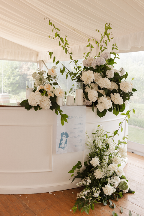 One of my favourite personal touches? Their custom bar sign starring their pup Jimmy! Light blue satin, it was not only adorable but a fun nod to their little family.