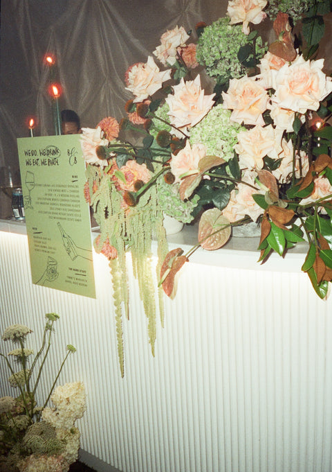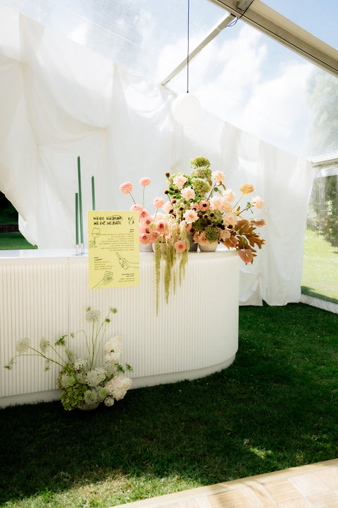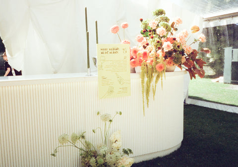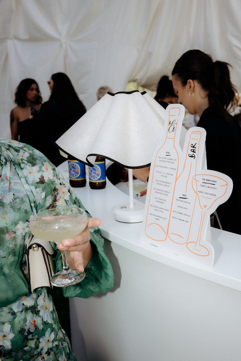 At the bar, we kept the fun flowing with a mix of playful elements — a main sign featuring whimsical hands holding drinks (cheers!), and a secondary menu that brought the beverages to life with signs shaped like a beer bottle, wine bottle, and cocktail glass. Who says signs have to be square?
