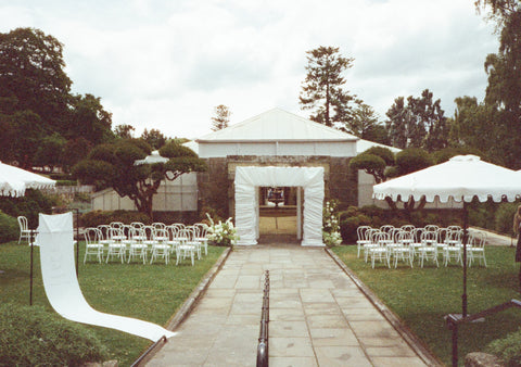 Pops of green and orange were scattered throughout the black and white base palette, bringing a bold yet natural contrast that looked right at home in the garden setting. Everything felt cohesive, playful, and full of love.