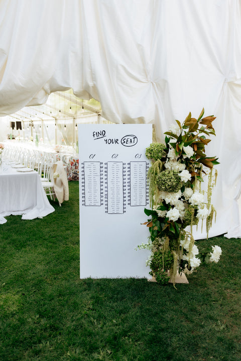 Their seating chart was another favourite — designed to resemble the actual table layout, complete with illustrated tables and chairs. It was functional, yes, but also added such a thoughtful and charming layer to the guest experience.