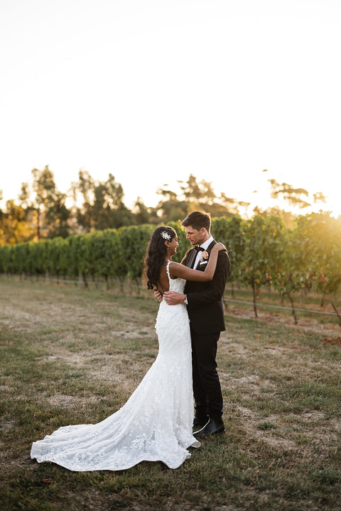 Keira and Jesse’s wedding at the breathtaking Waterton Hall Wines was the kind of day that felt like it had been pulled from the pages of a storybook. Set amongst the vineyards and overlooking the Tamar River, their celebration was full of romance, sunshine, and intentional design details that perfectly reflected their vision: a romantic, summery, and magical day.
